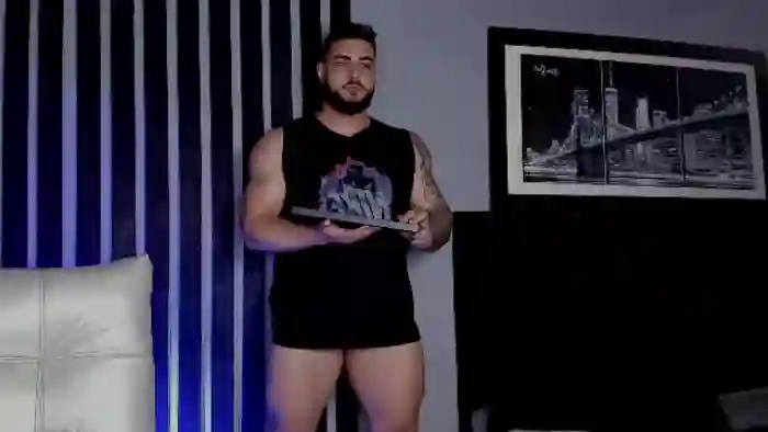 His birthday is August 14th 1999 making him 26 years old, and the average age of models on Flirt4Free is 25—making him one of the older models. His height is 182cm, and his weight is 100kg. He identifies his ethnicity as hispanic. He has a shaved pubic hair, muscular body with brown eyes and short black hair.His body art includes tattoo(s).