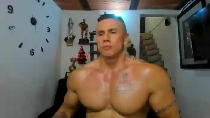 His birthday is November 8th 1990 making him 35 years old, and the average age of models on Flirt4Free is 25—making him one of the older models. His height is 185cm, and his weight is 109kg. He identifies his ethnicity as hispanic. He has a natural pubic hair, muscular body with black eyes and average brown hair.His body art includes tattoo(s).