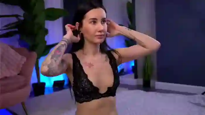 Her birthday is February 2nd 1995 making her 30 years old, and the average age of models on Flirt4Free is 25—making her one of the older models. Her height is 170cm, and her weight is 45kg. She identifies her ethnicity as caucasian. She has a shaved pubic hair, and c cup breasts on a slim body with blue eyes and long black hair.Her body art includes tattoo(s).