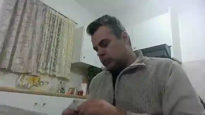 His birthday is January 1st 1990 making him 35 years old, and the average age of models on Flirt4Free is 25—making him one of the older models. His height is 186cm, and his weight is 100kg. He identifies his ethnicity as caucasian. He has a trimmed pubic hair, muscular body with black eyes and short black hair.