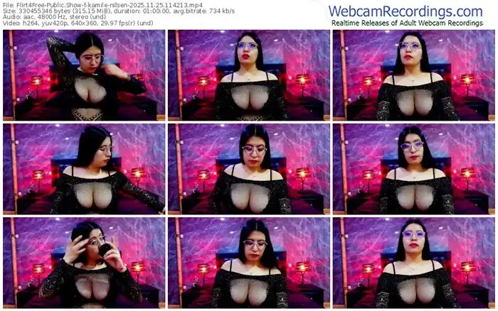There are a total of 1,476 recordings (983 hours) of kamile-nilsen from Flirt4Free available below.