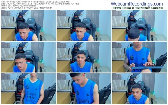 There are a total of 264 recordings (202 hours) of riccie-pezzutti from Flirt4Free available below.