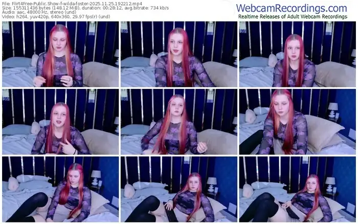 There are a total of 641 recordings (294 hours) of wilda-foster from Flirt4Free available below.