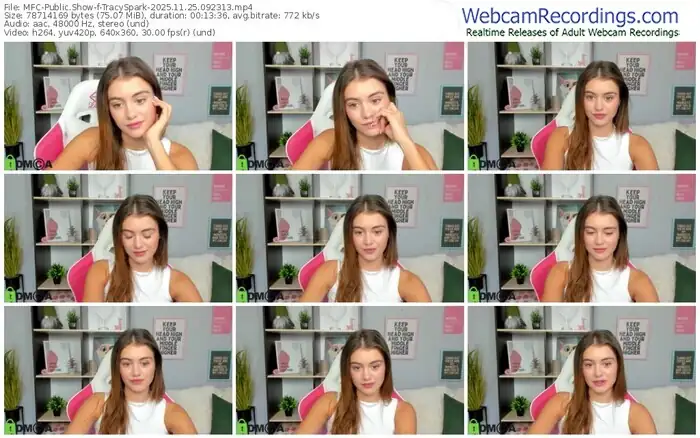 There are a total of 389 recordings (161 hours) of TracySpark from MyFreeCams and Stripchat available below.