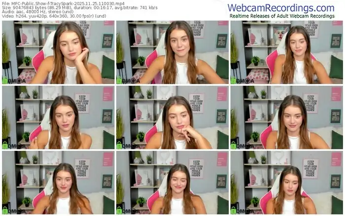 There are a total of 389 recordings (161 hours) of TracySpark from MyFreeCams and Stripchat available below.