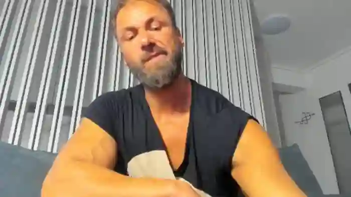 His birthday is July 17th 1987 making him 38 years old, and the average age of models on Flirt4Free is 25—making him one of the older models. His height is 180cm, and his weight is 93kg. He identifies his ethnicity as caucasian. He has a trimmed pubic hair, muscular body with blue eyes and short blonde hair.
