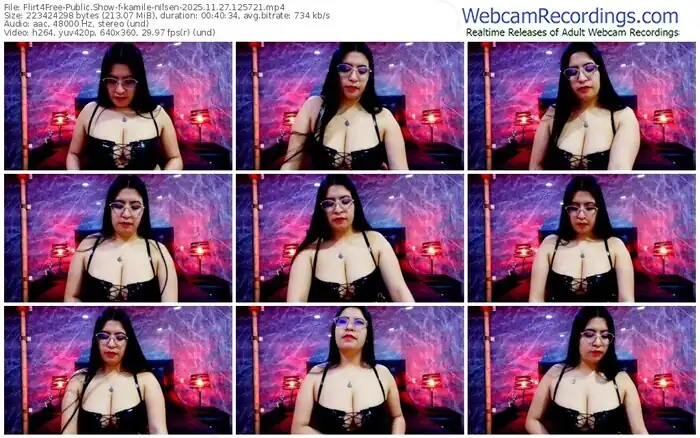 There are a total of 1,476 recordings (983 hours) of kamile-nilsen from Flirt4Free available below.