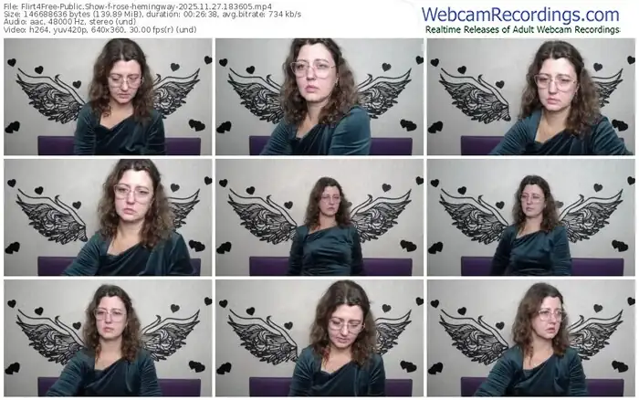 There are a total of 81 recordings (33 hours) of rose-hemingway from Flirt4Free available below.