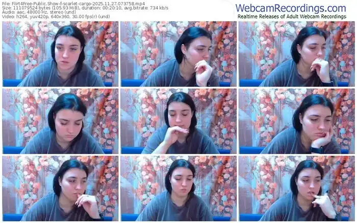 There are a total of 164 recordings (59 hours) of scarlet-cargo from Flirt4Free available below.