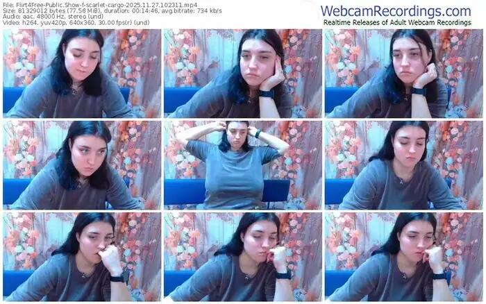 There are a total of 164 recordings (59 hours) of scarlet-cargo from Flirt4Free available below.