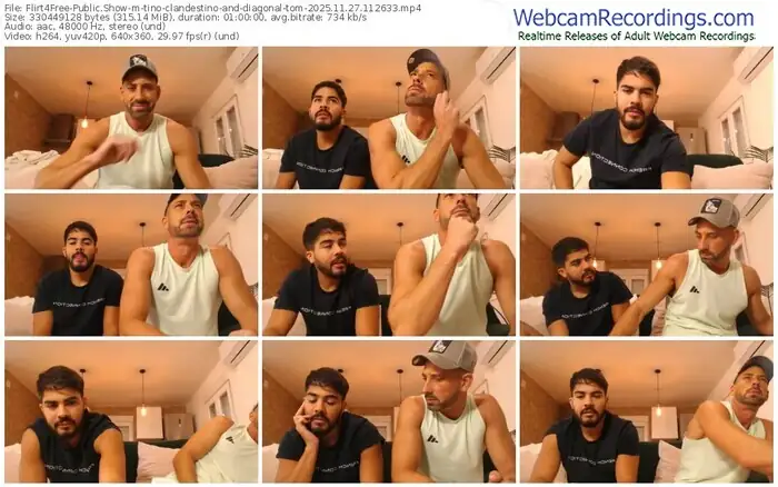There are a total of 57 recordings (36 hours) of tino-clandestino-and-diagonal-tom from Flirt4Free available below.