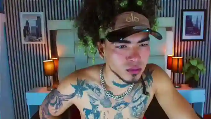 His birthday is January 16th 2004 making him 21 years old, and the average age of models on Flirt4Free is 25—making him one of the younger models. His height is 174cm, and his weight is 48kg. He identifies his ethnicity as hispanic. He has a shaved pubic hair, athletic body with brown eyes and bald black hair.His body art includes piercings, tattoo(s).