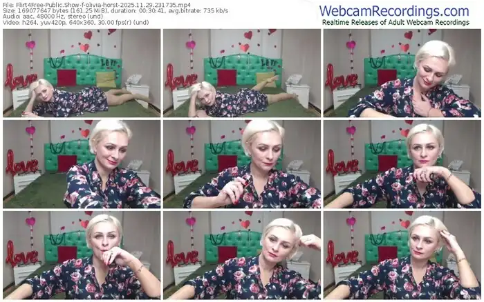 There are a total of 1,052 recordings (493 hours) of olivia-horst from Flirt4Free available below.