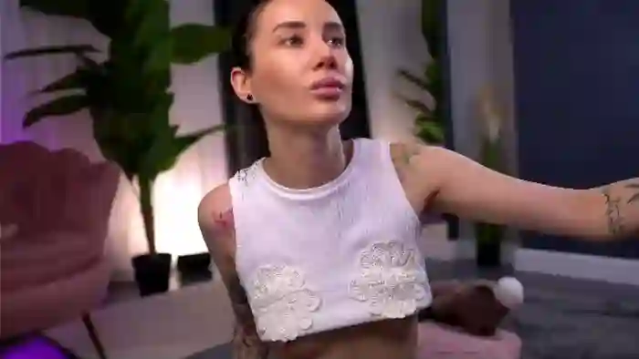 Her birthday is February 2nd 1995 making her 30 years old, and the average age of models on Flirt4Free is 25—making her one of the older models. Her height is 170cm, and her weight is 45kg. She identifies her ethnicity as caucasian. She has a shaved pubic hair, and c cup breasts on a slim body with blue eyes and long black hair.Her body art includes tattoo(s).