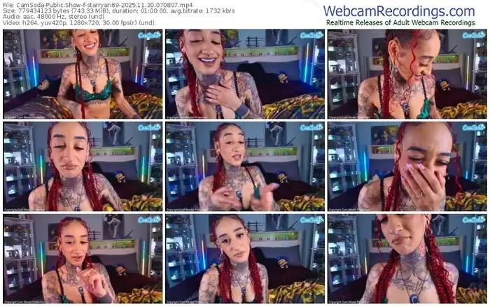 There are a total of 2,134 recordings (1,379 hours) of starryari69 from CamSoda available below.