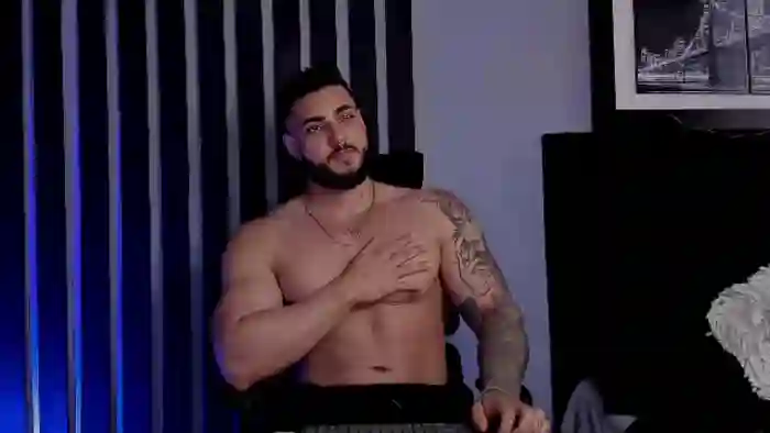 His birthday is August 14th 1999 making him 26 years old, and the average age of models on Flirt4Free is 25—making him one of the older models. His height is 182cm, and his weight is 100kg. He identifies his ethnicity as hispanic. He has a shaved pubic hair, muscular body with brown eyes and short black hair.His body art includes tattoo(s).