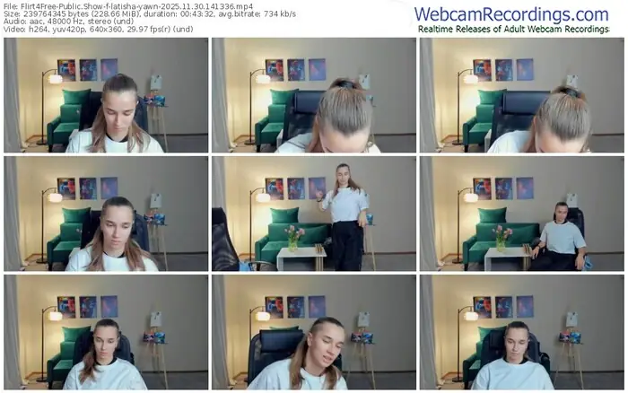 There are a total of 31 recordings (23 hours) of latisha-yawn from Flirt4Free available below.