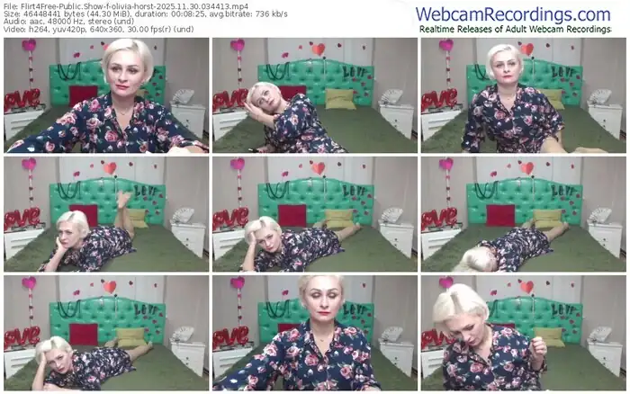 There are a total of 1,052 recordings (493 hours) of olivia-horst from Flirt4Free available below.