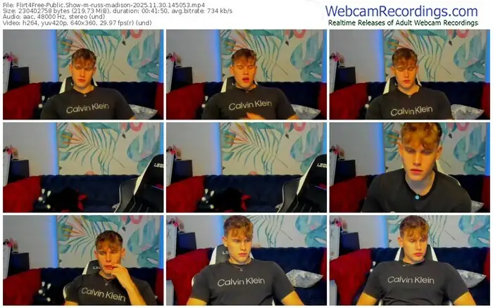 There are a total of 473 recordings (311 hours) of russ-madison from Flirt4Free available below.