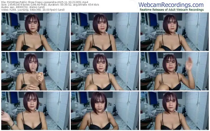 There are a total of 543 recordings (322 hours) of sexy-cassandra from Flirt4Free available below.