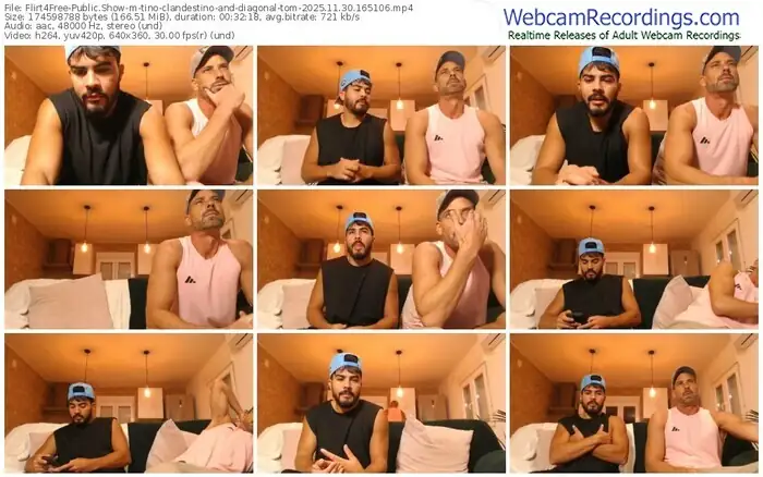 There are a total of 57 recordings (36 hours) of tino-clandestino-and-diagonal-tom from Flirt4Free available below.
