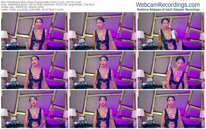 There are a total of 79 recordings (37 hours) of emilie-lake from Flirt4Free available below.