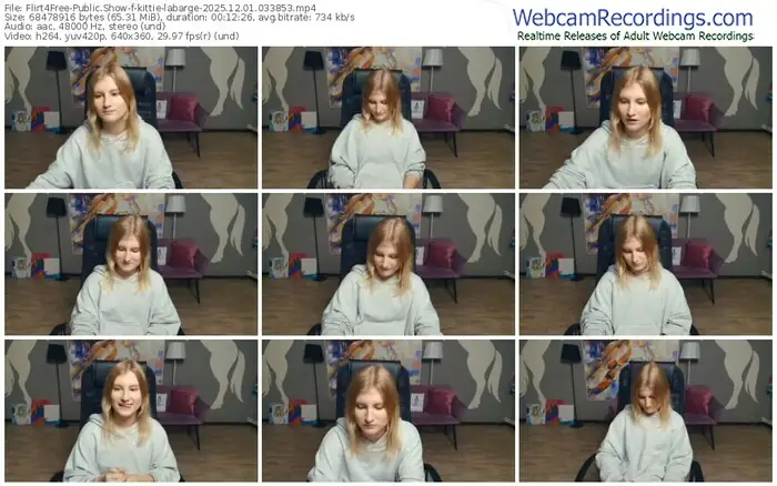 There are a total of 58 recordings (37 hours) of kittie-labarge from Flirt4Free available below.