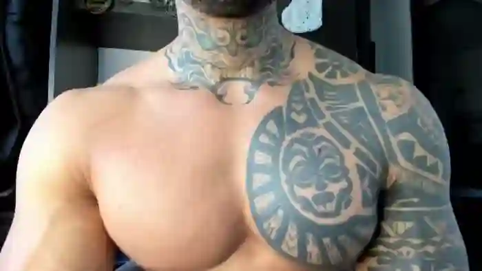 His birthday is July 12th 1994 making him 31 years old, and the average age of models on Flirt4Free is 25—making him one of the older models. His height is 185cm, and his weight is 113kg. He identifies his ethnicity as mixed. He has a shaved pubic hair, muscular body with brown eyes and bald bald hair.His body art includes tattoo(s).