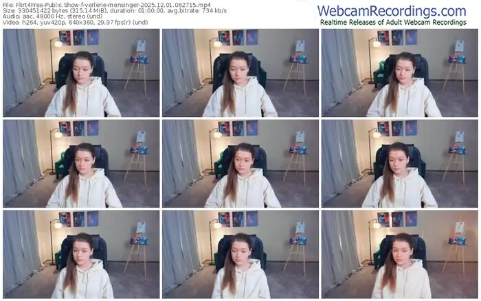 There are a total of 19 recordings (17 hours) of verlene-mensinger from Flirt4Free available below.
