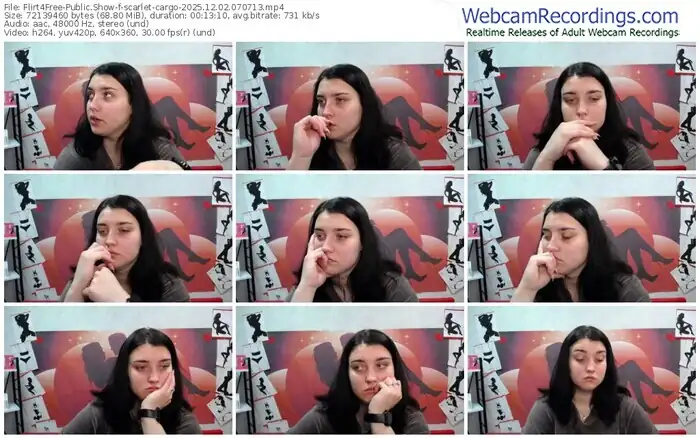 There are a total of 164 recordings (59 hours) of scarlet-cargo from Flirt4Free available below.