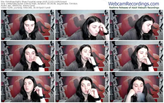 There are a total of 164 recordings (59 hours) of scarlet-cargo from Flirt4Free available below.