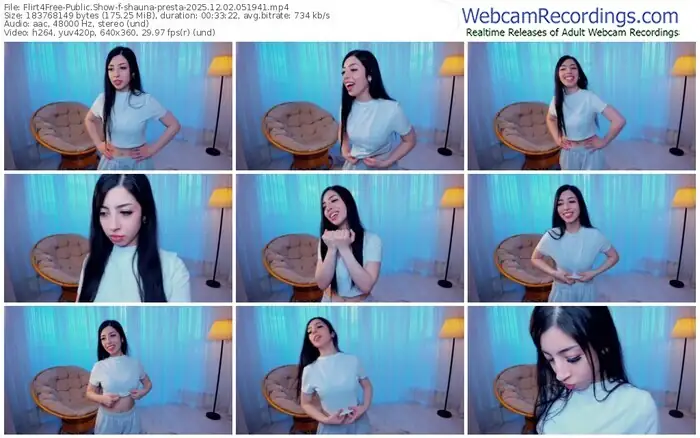 There are a total of 240 recordings (157 hours) of shauna-presta from Flirt4Free available below.