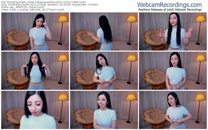 There are a total of 240 recordings (157 hours) of shauna-presta from Flirt4Free available below.