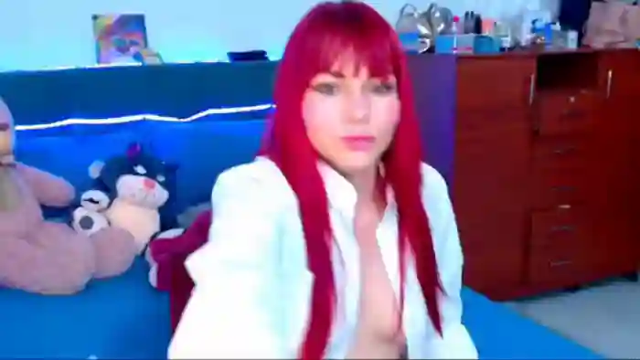 Her birthday is October 21st 1995 making her 30 years old, and the average age of models on Flirt4Free is 25—making her one of the older models. Her height is 160cm, and her weight is 54kg. She identifies her ethnicity as hispanic. She has a shaved pubic hair, and a cup breasts on a slim body with brown eyes and short red hair.Her body art includes tattoo(s).