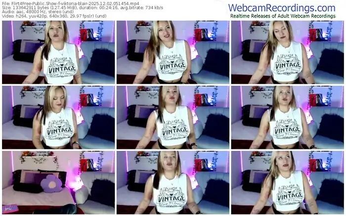 There are a total of 349 recordings (134 hours) of viktoria-blair from Flirt4Free available below.