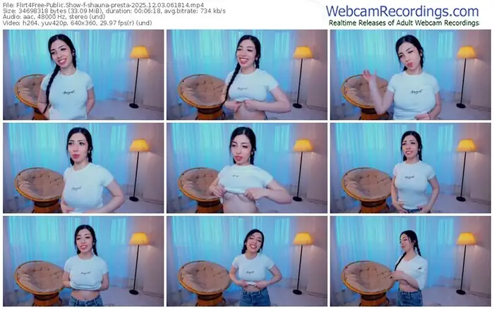 There are a total of 240 recordings (157 hours) of shauna-presta from Flirt4Free available below.