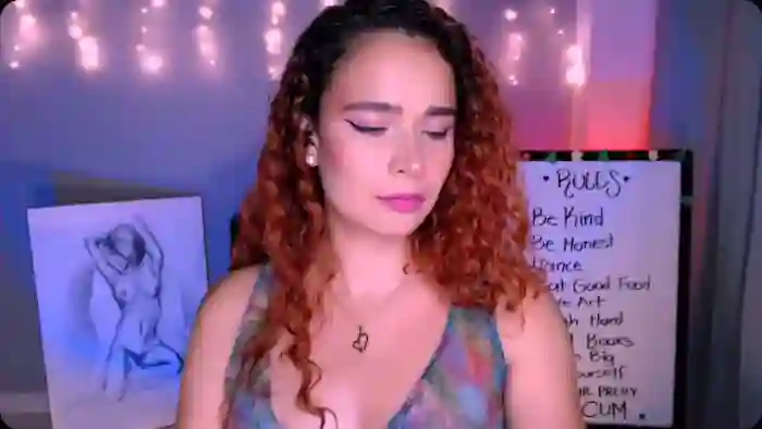 Her birthday is June 13th 1996 making her 29 years old, and the average age of models on Flirt4Free is 25—making her one of the older models. Her height is 165cm, and her weight is 62kg. She identifies her ethnicity as hispanic. She has a hairy pubic hair, and c cup breasts on a average body with brown eyes and long red hair.Her body art includes tattoo(s).