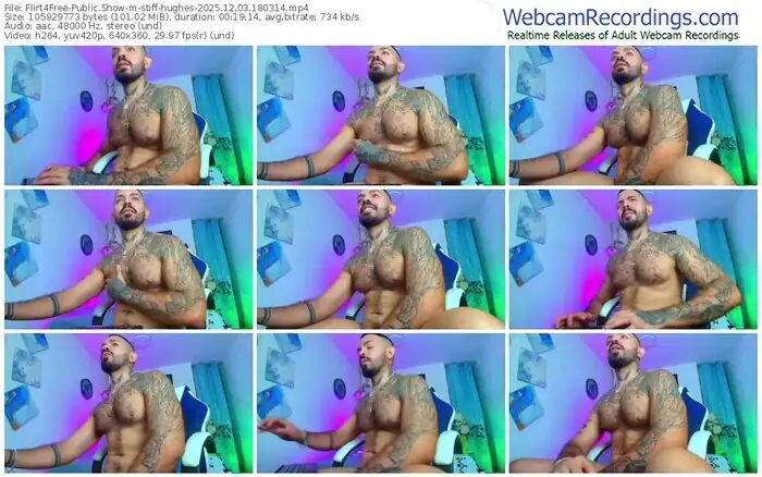 There are a total of 151 recordings (109 hours) of stiff-hughes from Flirt4Free available below.