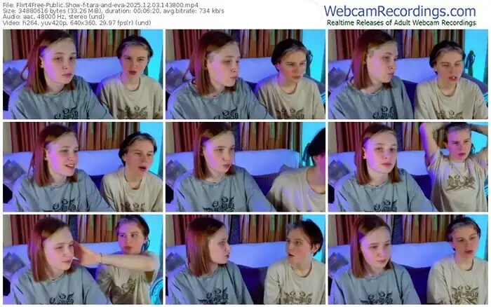 There are a total of 84 recordings (54 hours) of tara-and-eva from Flirt4Free available below.