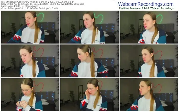 There are a total of 37 recordings (12 hours) of Candy_Cansew from Stripchat available below.