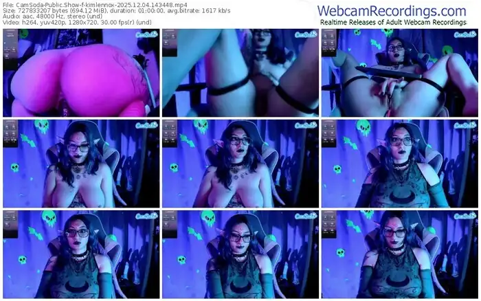 There are a total of 438 recordings (249 hours) of kimlennox from CamSoda and Stripchat available below.