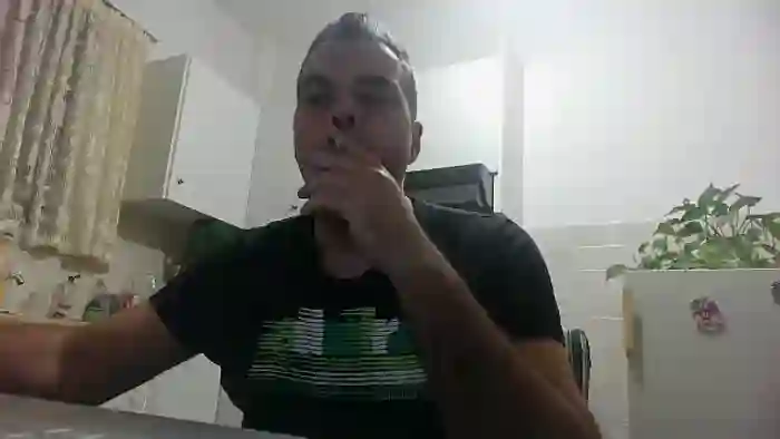His birthday is January 1st 1990 making him 35 years old, and the average age of models on Flirt4Free is 25—making him one of the older models. His height is 186cm, and his weight is 100kg. He identifies his ethnicity as caucasian. He has a trimmed pubic hair, muscular body with black eyes and short black hair.