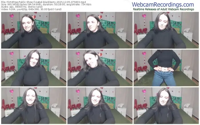 There are a total of 1,068 recordings (490 hours) of isabel-blackberry from Flirt4Free available below.