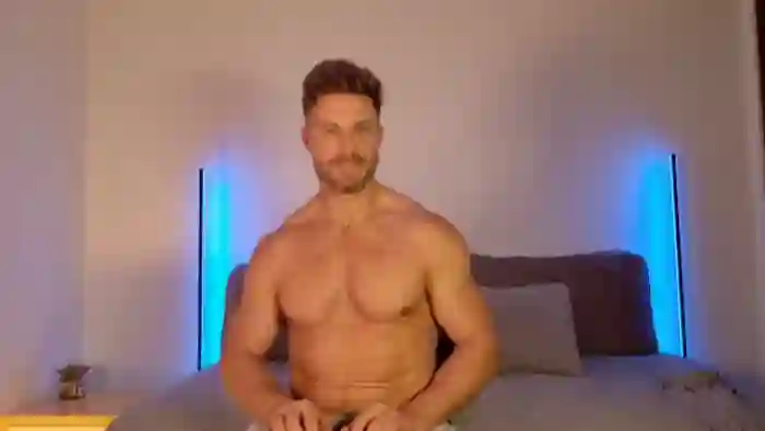 His birthday is May 16th 1989 making him 36 years old, and the average age of models on Flirt4Free is 25—making him one of the older models. His height is 187cm, and his weight is 92kg. He identifies his ethnicity as caucasian. He has a trimmed pubic hair, athletic body with blue eyes and average blonde hair.