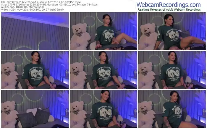 There are a total of 1,835 recordings (1,057 hours) of susan-kiut from Flirt4Free available below.