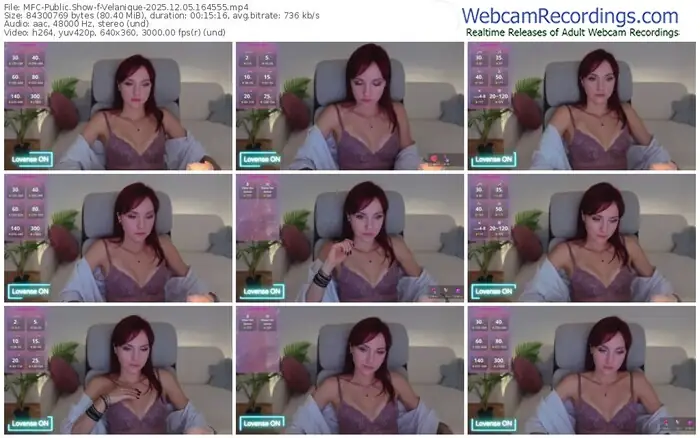 There are a total of 174 recordings (77 hours) of Velanique from MyFreeCams available below.