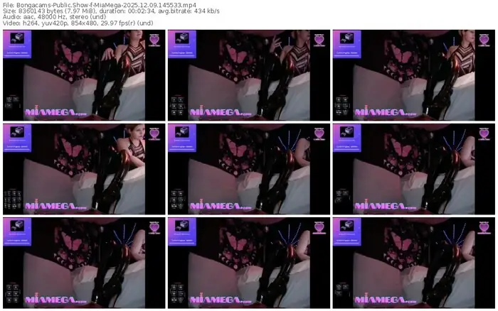 There are a total of 6 recordings (2 hours) of MiaMega from Bongacams available below.