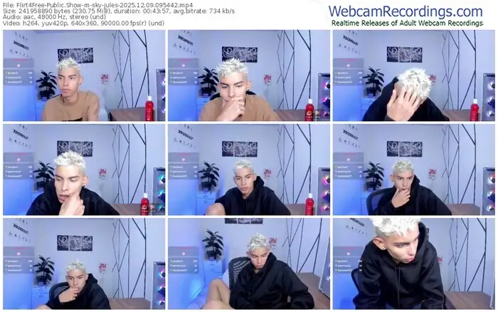 There are a total of 12 recordings (8 hours) of sky-jules from Flirt4Free available below.