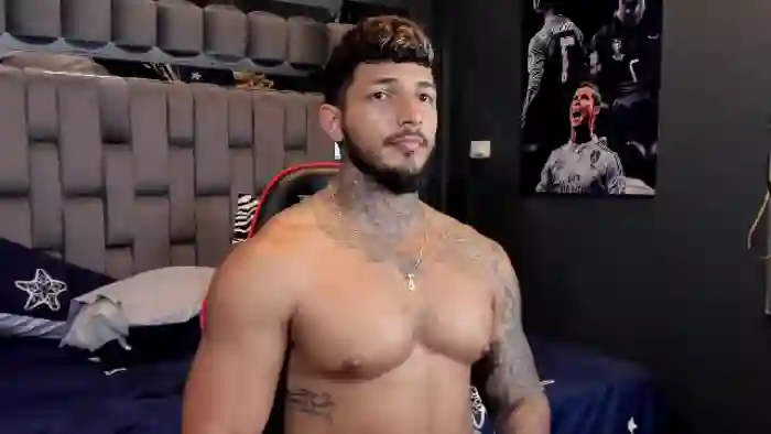 His birthday is October 29th 1997 making him 28 years old, and the average age of models on Flirt4Free is 25—making him one of the older models. His height is 177cm, and his weight is 90kg. He identifies his ethnicity as hispanic. He has a natural pubic hair, muscular body with brown eyes and short multi color hair.His body art includes piercings, tattoo(s).