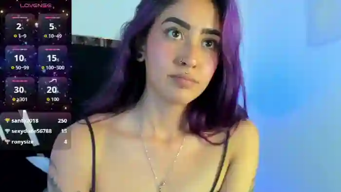 Her birthday is December 1st 2006 making her 19 years old, and the average age of models on Flirt4Free is 25—making her one of the younger models. Her height is 160cm, and her weight is 50kg. She identifies her ethnicity as hispanic. She has a shaved pubic hair, and c cup breasts on a slim body with brown eyes and shoulder multi color hair.Her body art includes piercings, tattoo(s).